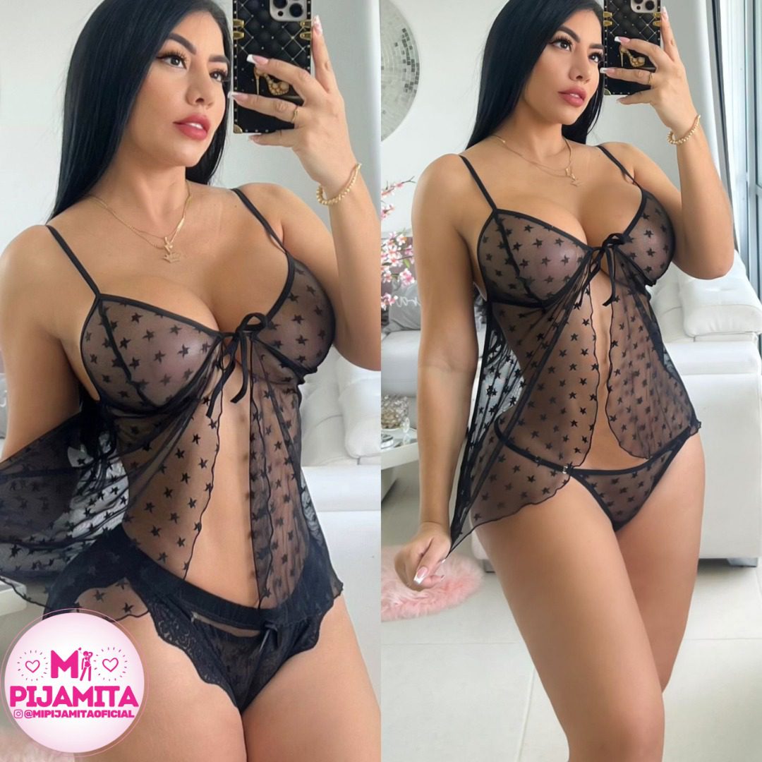 En esta referencia vienen las 3 piezas, el babydoll, la tanga y el cachetero, talla unica ajustable para las tallas S, M y L